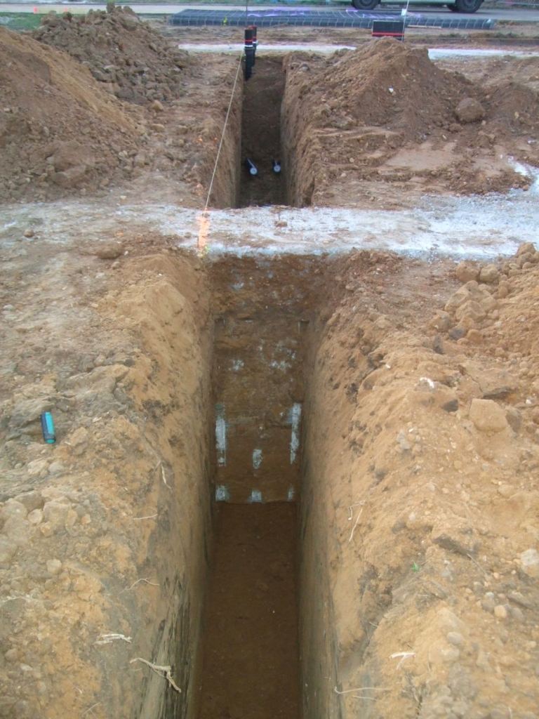 Die Leerrohre werden unter die Fundamente gelegt.