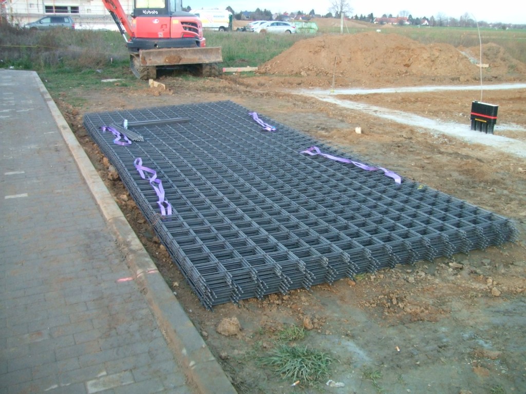 Außerdem liegen schon die Bewehrungsmatten für die Bodenplatte bereit.