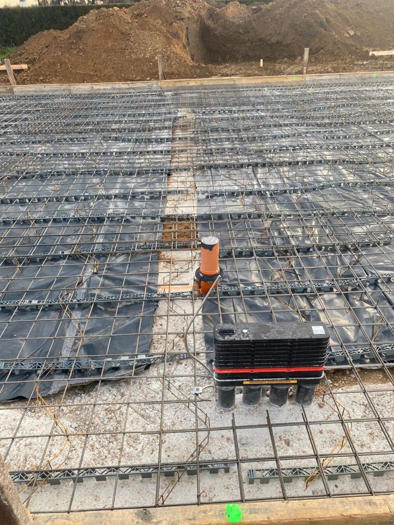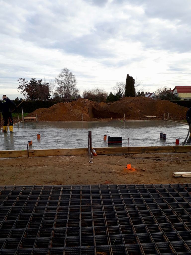 Bei Temperaturen um 10°C wurde heute die Bodenplatte gegossen.