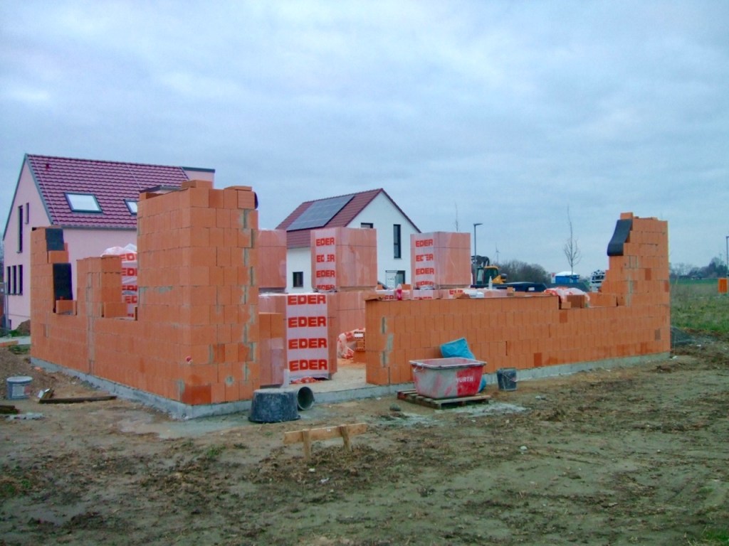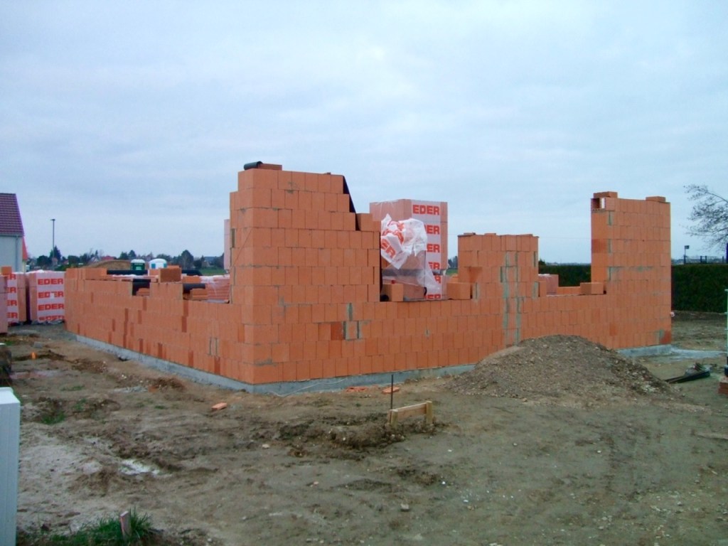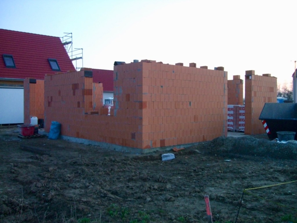 … am Dienstag waren drei Hausecken schon auf EG-Deckenhöhe..