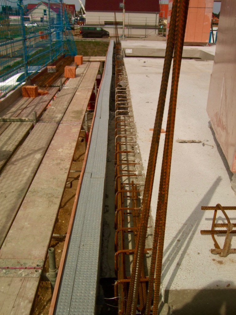 In den letzten beiden Tagen wurden die Schalungssteine für den Ringanker gesetzt und die entsprechende Bewehrung eingebracht.