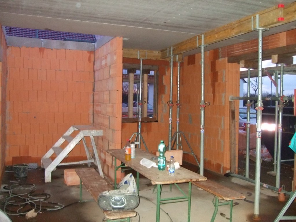 Die neue Woche startet zum einen mit der Fertigstellung der letzten massiven Wand im Erdgeschoss zwischen Treppenhaus und Bad…