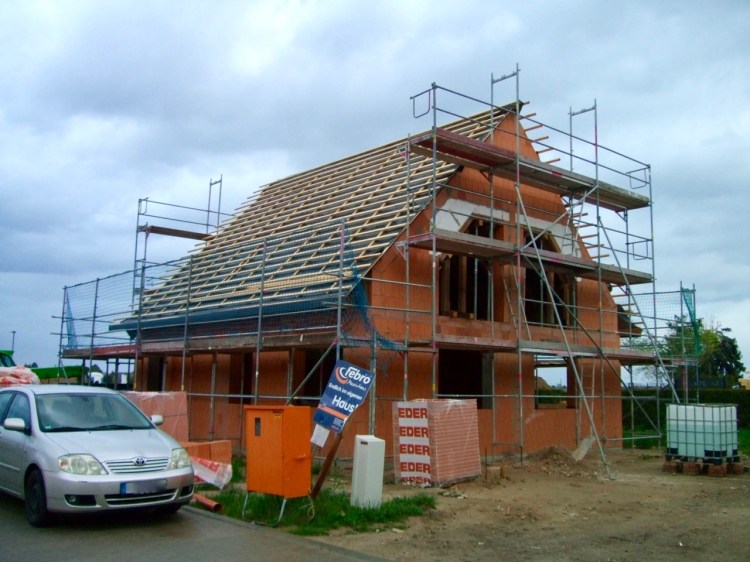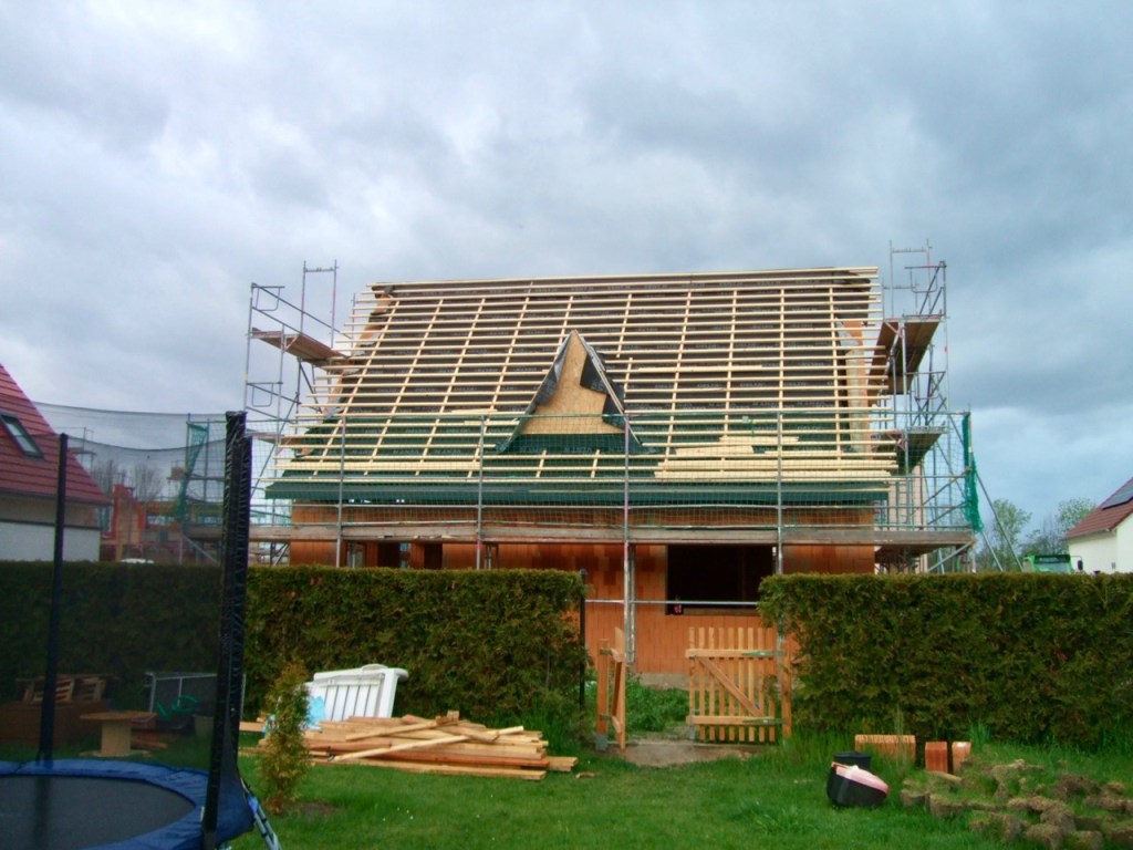 Heute waren die Dachdecker da und haben die Konter- und Traglattung und die Unterspannbahnen befestigt.